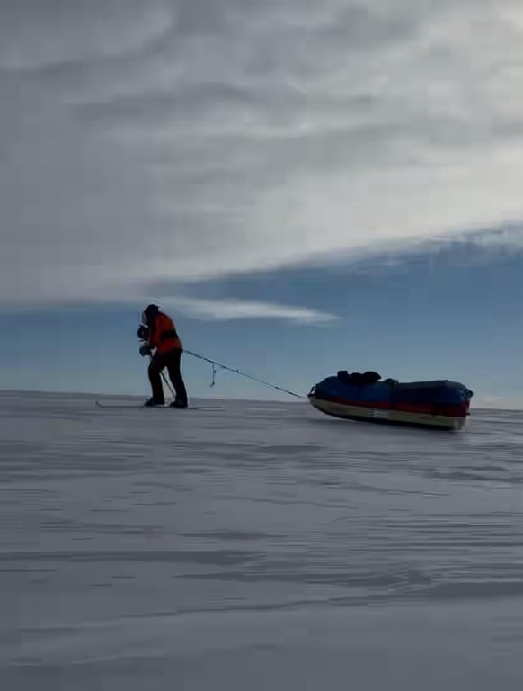 Physically, the early signs of the expedition have already shown themselves, with chafing and blisters forming as he clocks more hours on the skis. Even so, he maintained a strong rhythm, recording a 25 km day midweek. The toughest point came towards the end of the week, when heavy sastrugi and low visibility made progress far more demanding. The forecast suggests more challenging conditions ahead.
