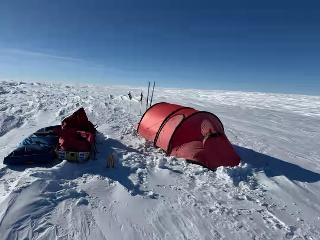 While progress remained consistent, every kilometre required sustained effort through difficult terrain and long days on the skis.
